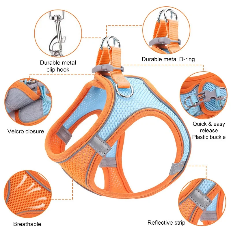 Reflective Dog Harness Leash Breathable Pet Harness for Small Medium Dogs