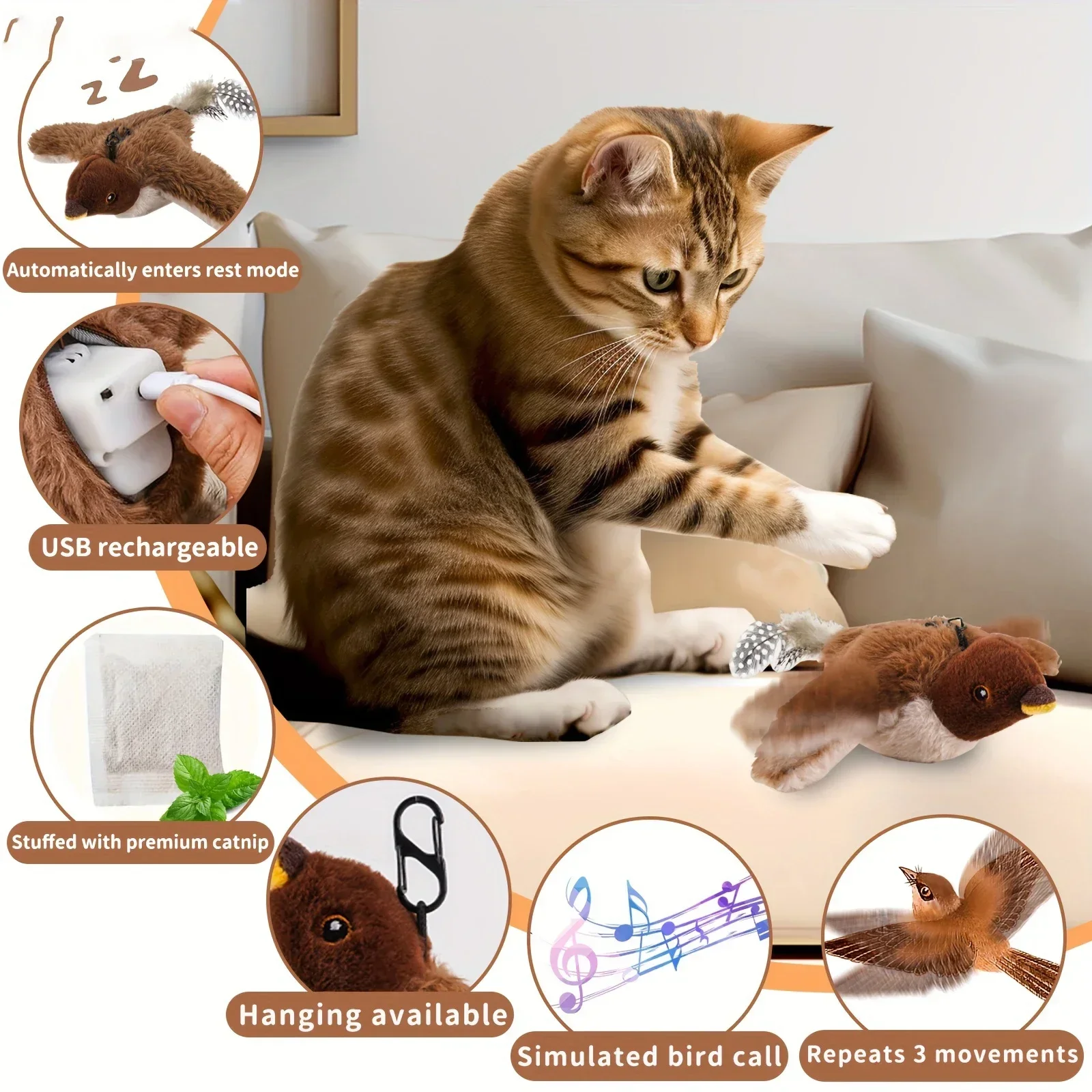 Remote Control Cat Toy Interactive Electric Fluttering Sparrow for Cats