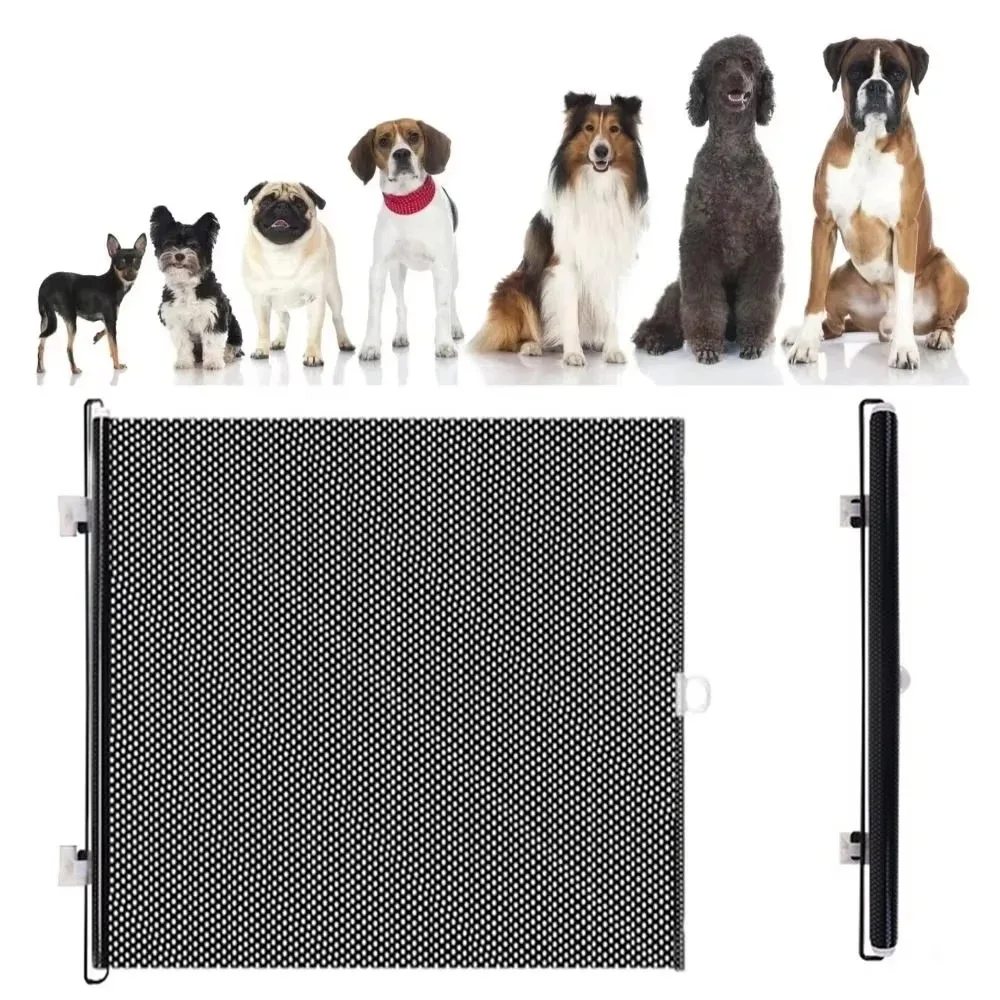 Retractable Pet Safety Gate is designed to keep your pets safe and secure indoors. This versatile mesh fence is suitable for dogs and kittens, making it an ideal solution for doorways and hallways. It is easy to install and comes with all necessary mounting accessories.