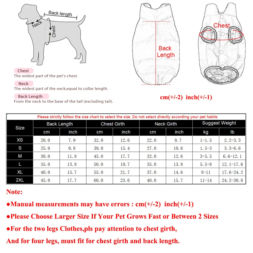 - Size 2XL: Back Length: Approximately 45 cm, Chest Girth: Approximately 60 cm, Neck Girth: Approximately 40 cm, Suggested Weight: 11-14 kg