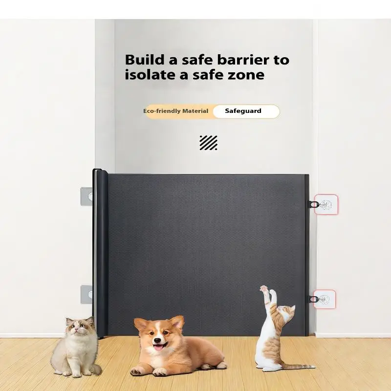 The retractable safety pet mesh fence is designed to provide a secure barrier for pets and children, making it ideal for use in doorways, hallways, and near stairs. Its retractable feature allows for easy operation, while the durable mesh structure ensures reliable safety. This gate is suitable for both indoor and outdoor use, including porches, balconies, and garages.
