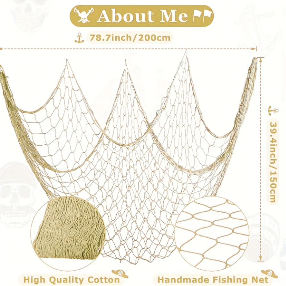 Simplicity fishing net decoration with a seashell beach theme is perfect for enhancing the ambiance of your party, family gatherings, or bedroom. This wall-mounted fishing net adds a touch of coastal charm to any space, making it an ideal decorative piece for those who love the beach aesthetic.