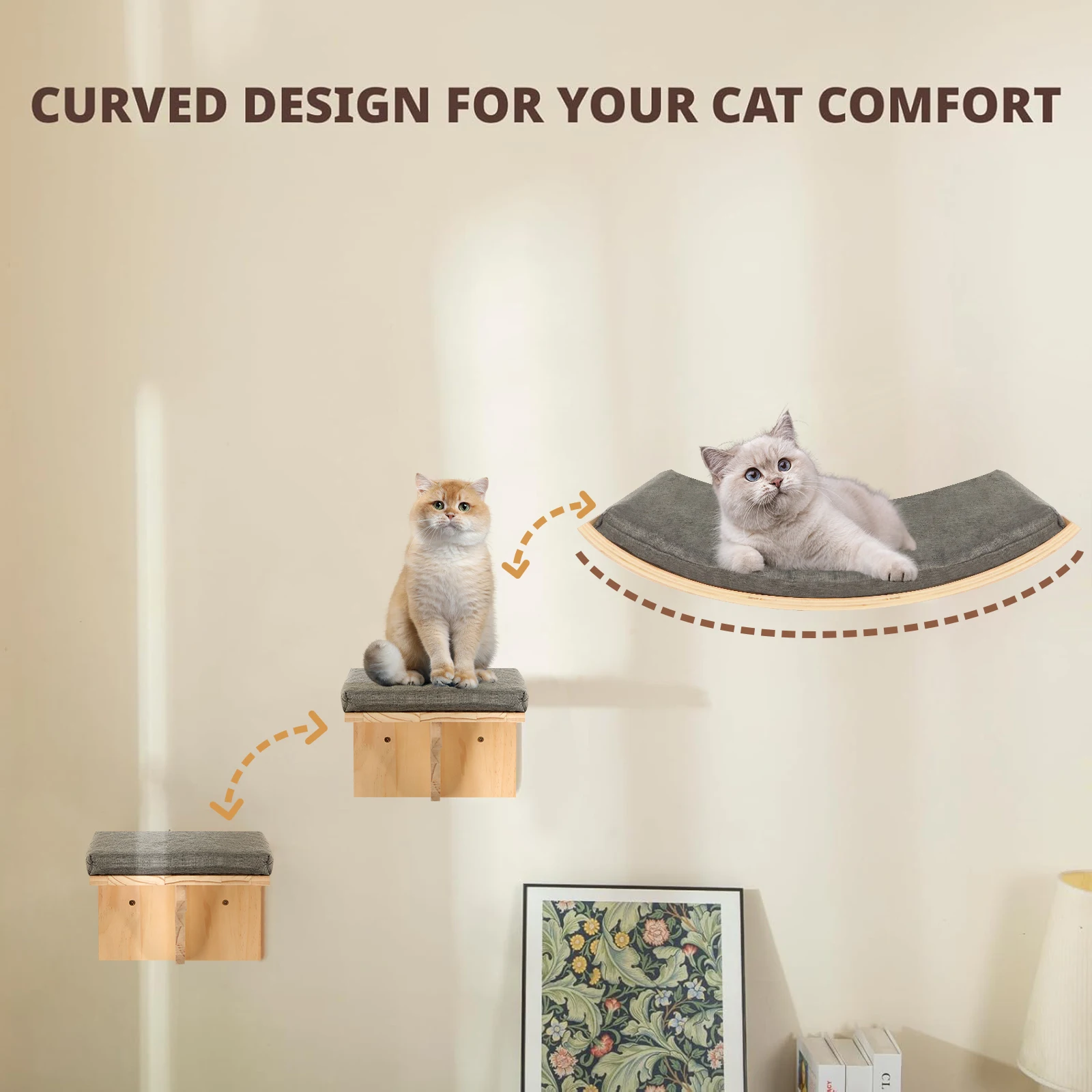Wooden Cat Shelves Wall Mounted Soft Cushioned Indoor Cat Climbing Furniture