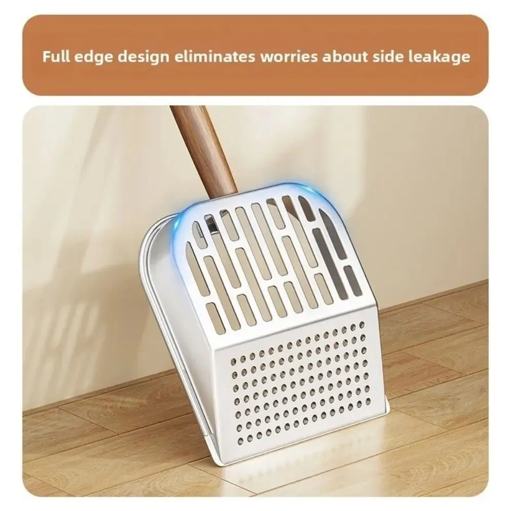 This cat litter scoop features a durable stainless steel shovel body and a long wooden handle, making it easy to clean your cat’s litter box without bending over. Its hollow design allows for efficient scooping, ensuring that you can keep your litter box clean and odor-free.