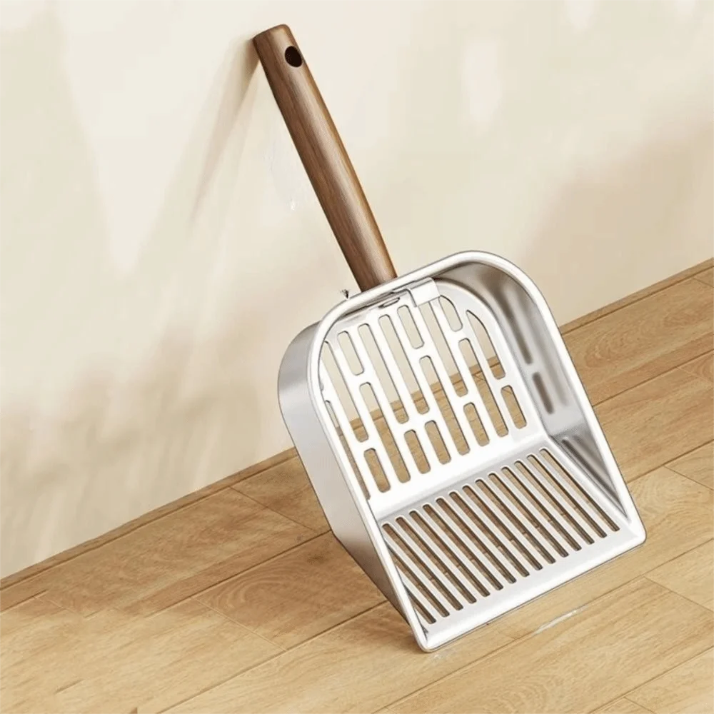 Stainless Steel Cat Litter Scoop Long Handled Wooden Handle Litter Box Shovel