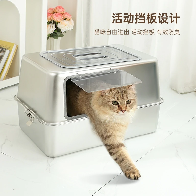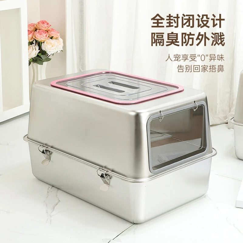 Stainless Steel Fully Enclosed Cat Litter Box XXXL Odor Proof Anti Splash