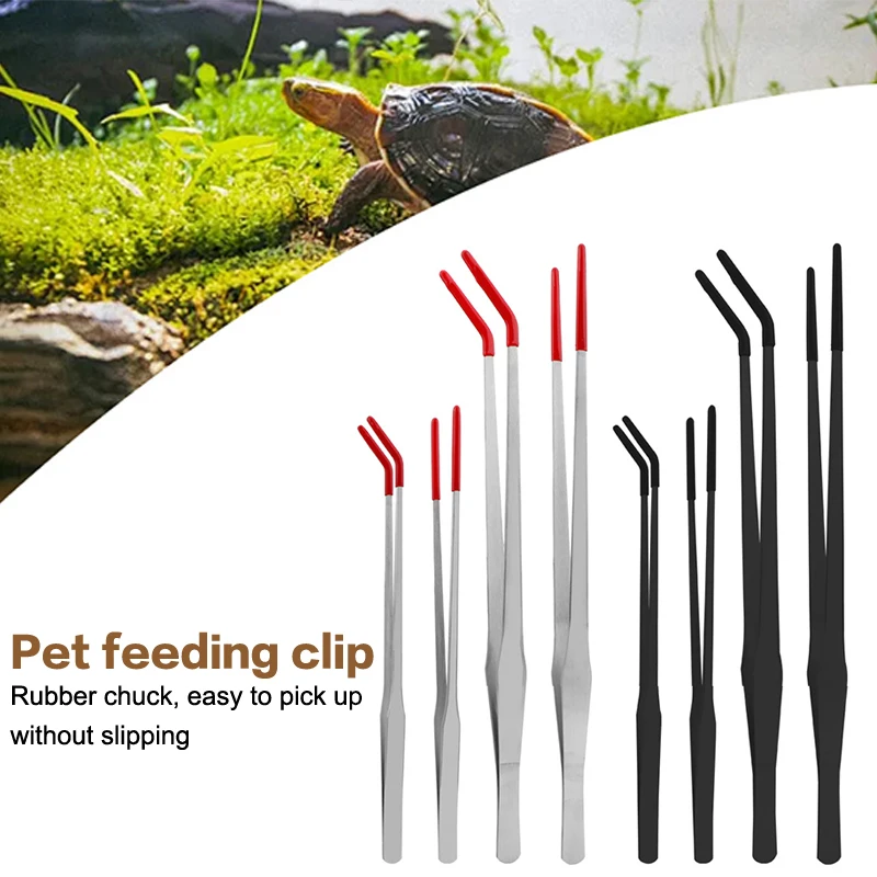 This stainless steel feeding tool is designed for convenience and safety when feeding reptiles and other small pets. The rubber tips provide a secure grip on food items, allowing for precise feeding without direct contact.