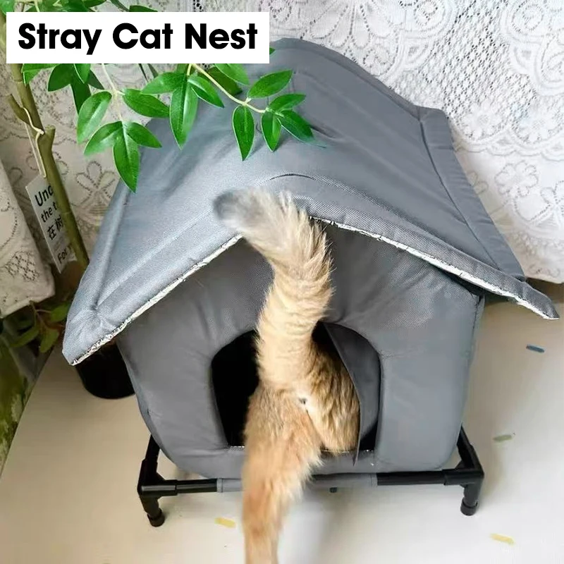 Stray Cat Dog House Waterproof Elevated Kitty Pet House Pad Outdoor Winter Warm