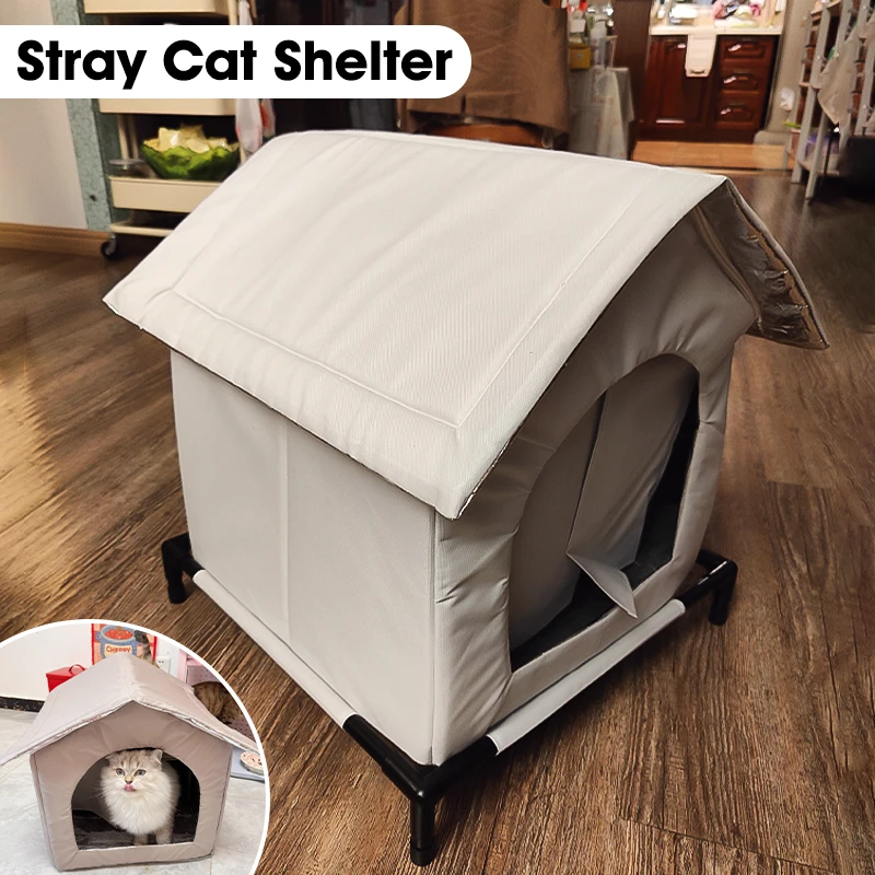 Stray Cat House Outdoor Waterproof Winter Warm Shelter Foldable Washable
