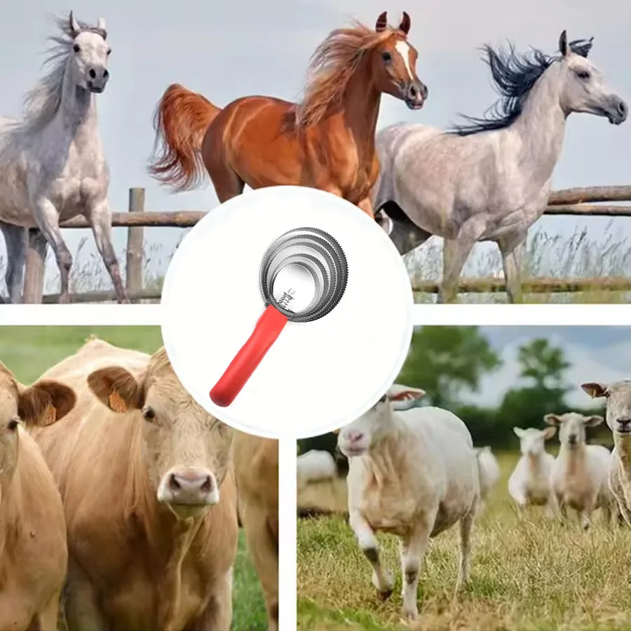 Sturdy Horses Serrated Curry Comb is designed for effective grooming and care of cattle, horses, and sheep. This comb is ideal for use in various environments such as feeding points, grooming areas, and during daily activities on the farm.