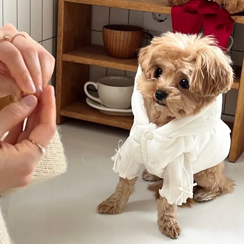 Dog Coat Stylish Down Jacket with Bow Embroidery for Winter Warmth