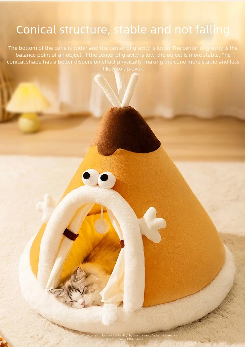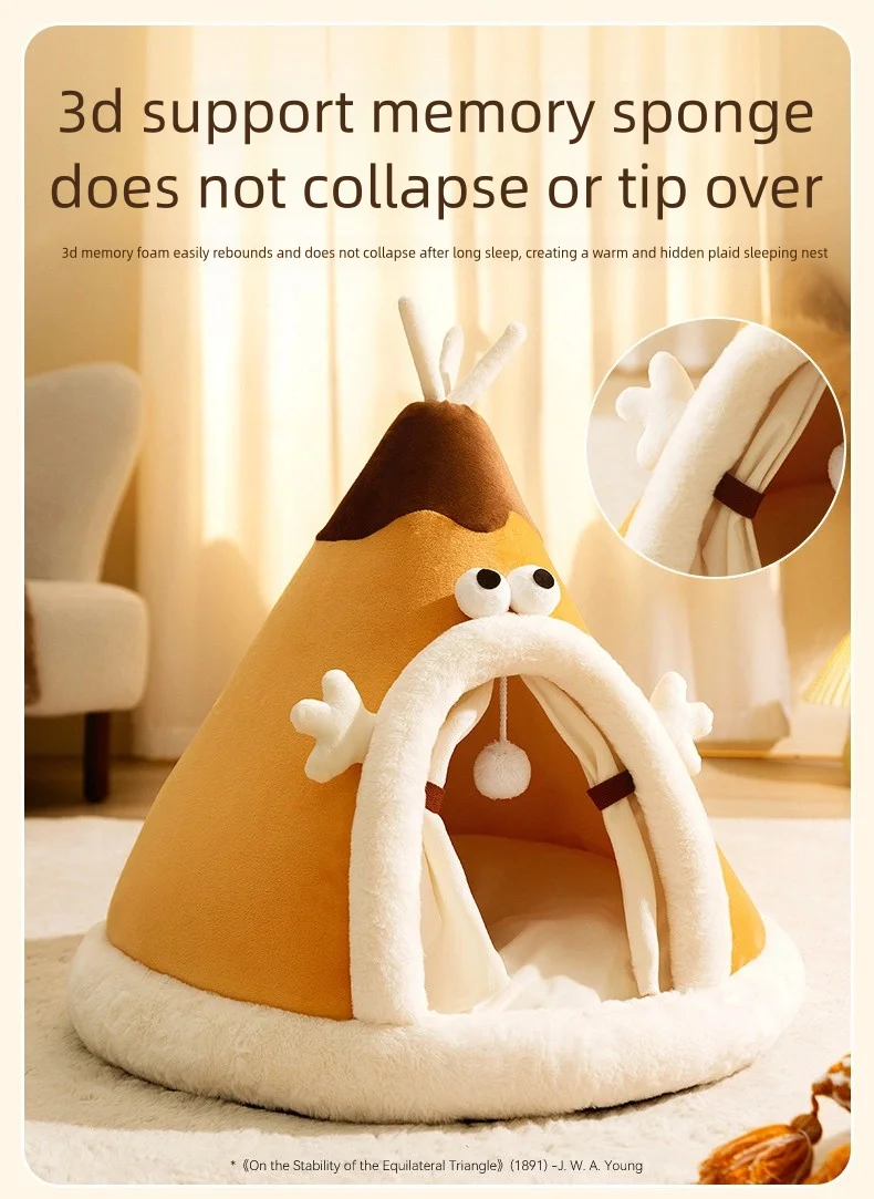Thickened warm tent cat bed for autumn and winter, suitable for small dogs, featuring a cute triangular design and yurt-style construction.