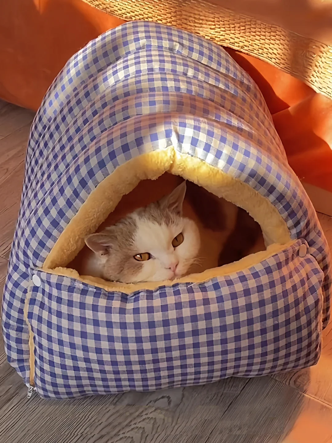 This versatile pet nest is designed to provide warmth and comfort for your furry friends during the winter months. Its closed structure ensures a cozy environment, making it an ideal retreat for your pets.