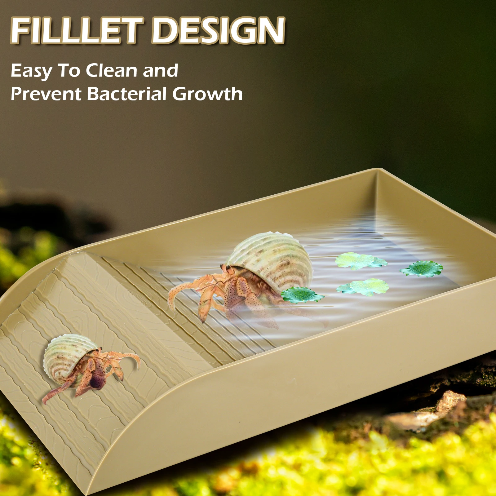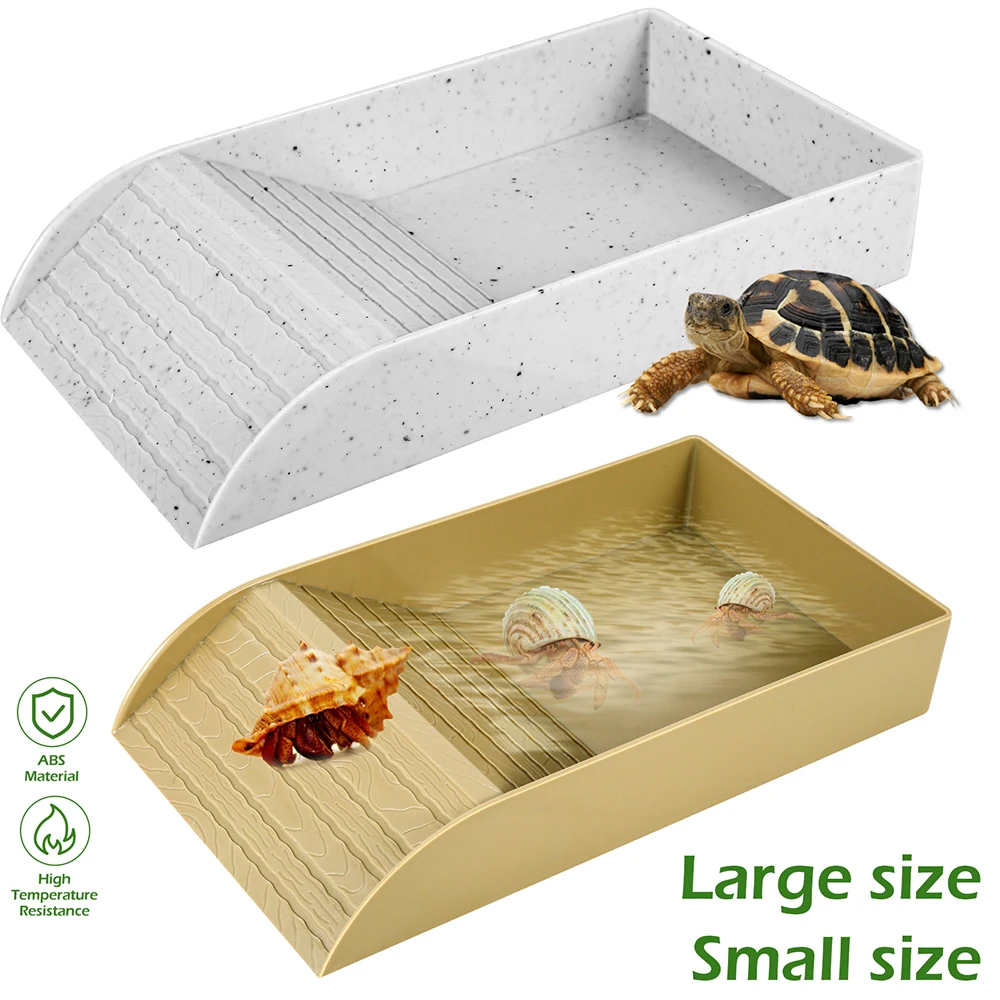This Tortoise Food Dish is a versatile accessory designed for turtles and other reptiles. It features a non-slip ramp that allows your pets to easily access food and water while mimicking their natural habitat.