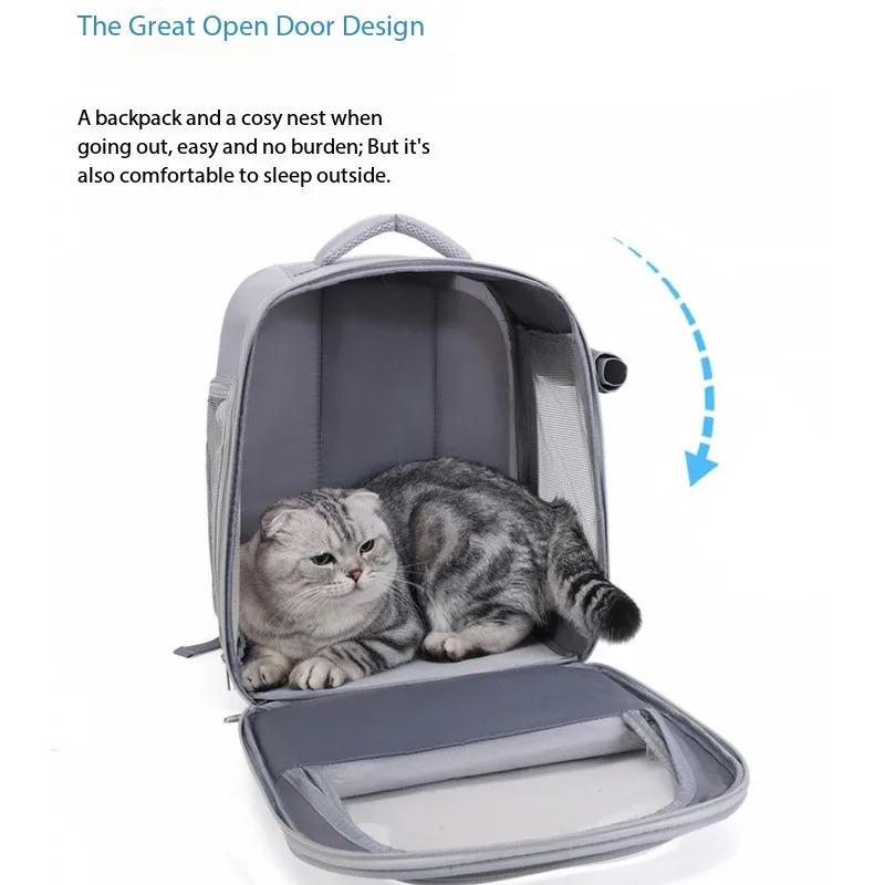 The Transparent Pet Cat Carrier Bag is designed for outdoor travel with your cats and small dogs. This breathable backpack ensures comfort and safety for your pets while on the go.