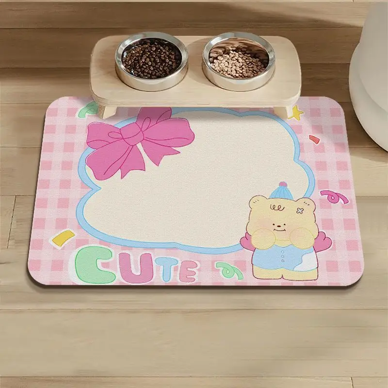 Cute Cartoon Cat Dog Pet Mat Waterproof Oil Resistant Food Safe Quick Dry Scratch Resistant Easy To Clean