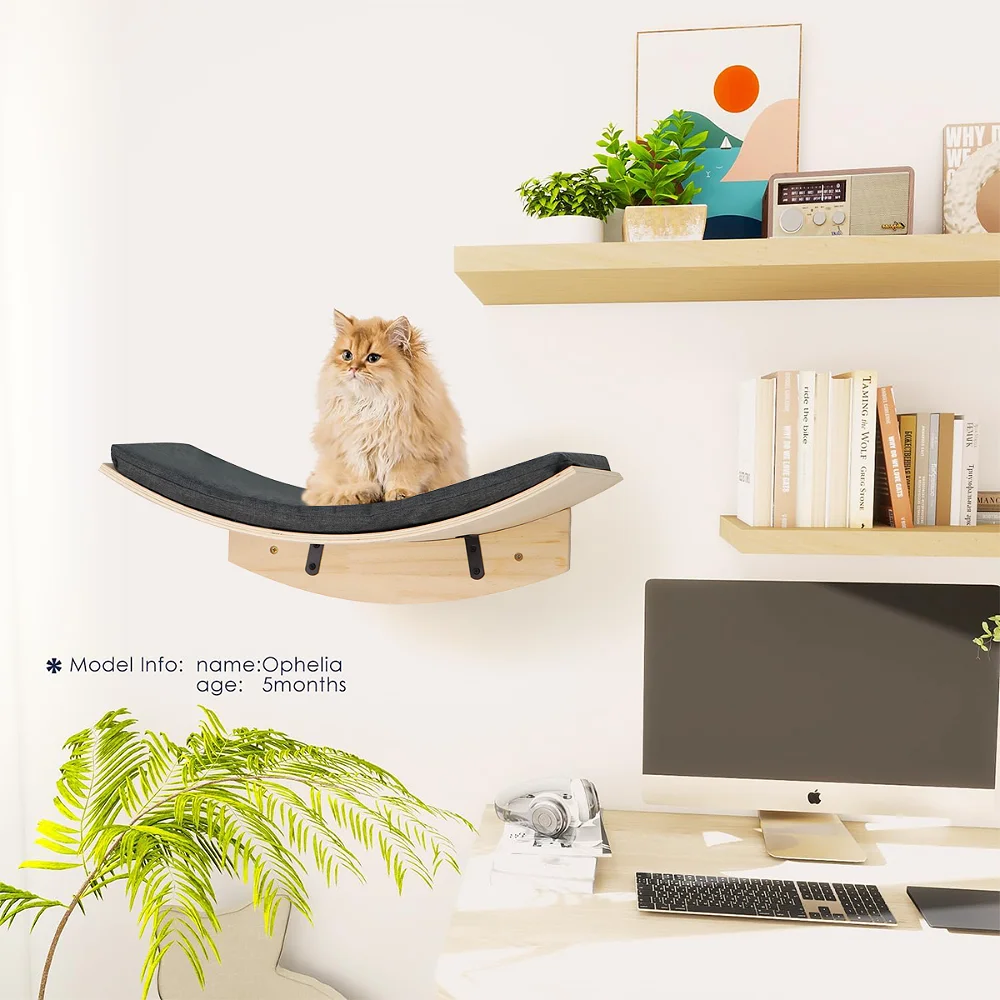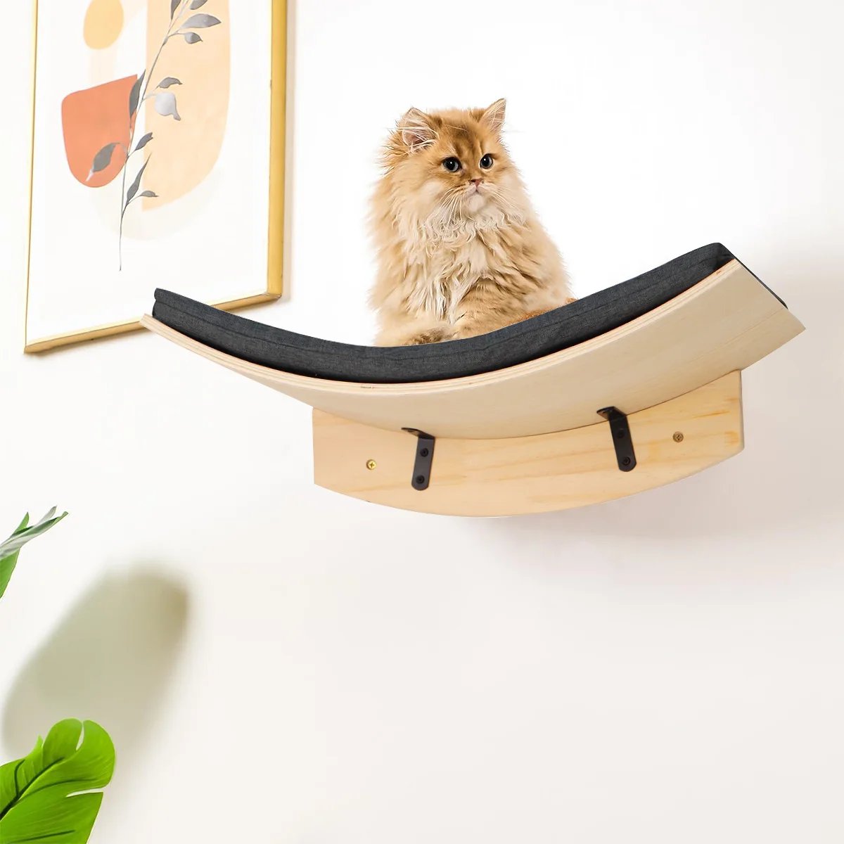 Wall Curved Cat Hammock with Soft Pad Cat Climbing Shelves Indoor Catwalk