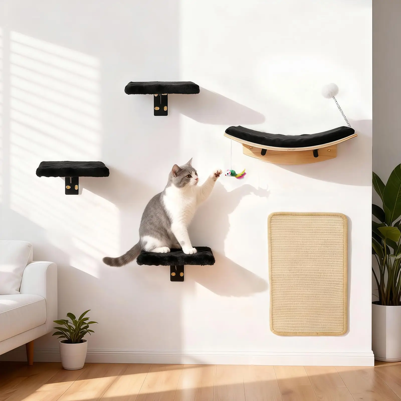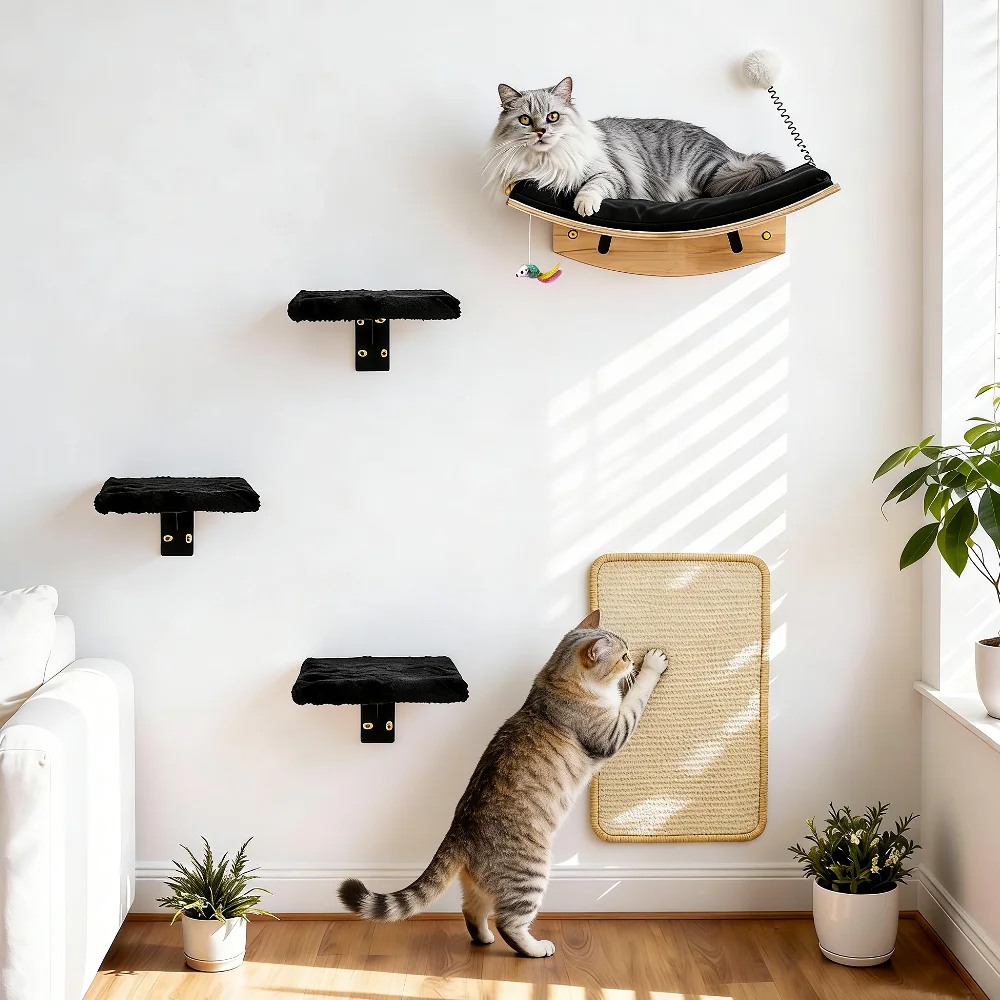 This cat wall shelf is designed to maximize your wall space, providing a private and enjoyable area for your cat to play and rest. It encourages an active lifestyle for your feline friend while enhancing your home decor.