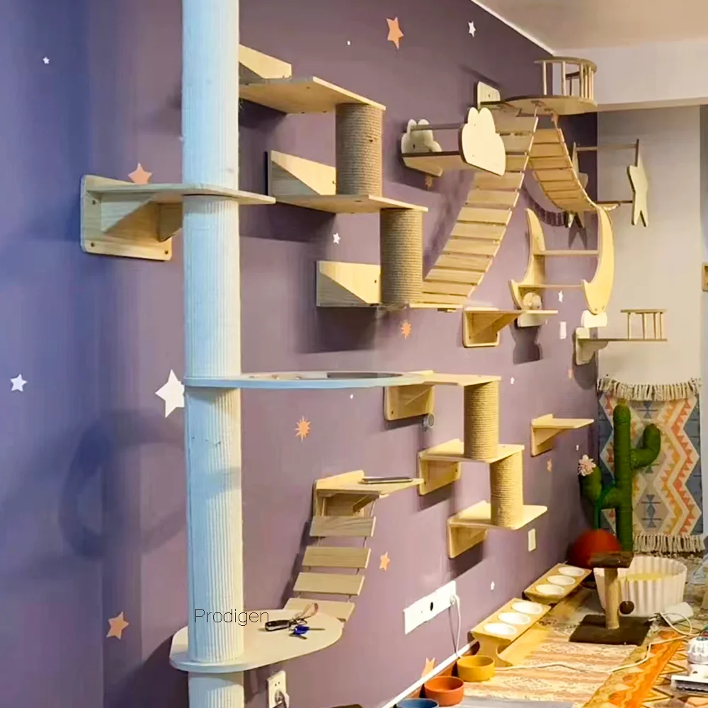 This wall-mounted cat climbing frame is designed to provide a fun and relaxing space for your cat. It allows your feline friend to climb, play, and rest comfortably. The installation is straightforward, and it can be placed in various locations around your home to suit your cat’s preferences.