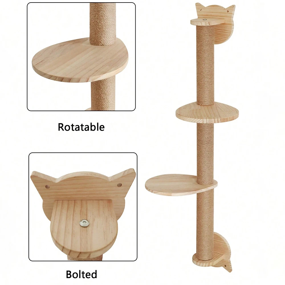 Wall Mounted Sisal Scratching Post Solid Wood Double Jumping Platform Cat Tree