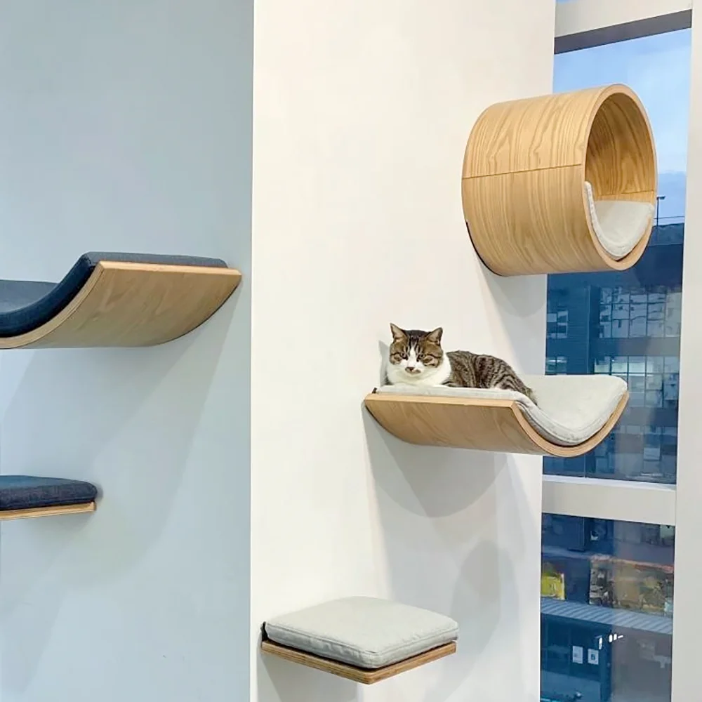 Create a unique and engaging environment for your cat with our customizable wall-mounted cat furniture. This versatile set allows you to design a personalized playground for your feline friend, enhancing both their playtime and your home decor.