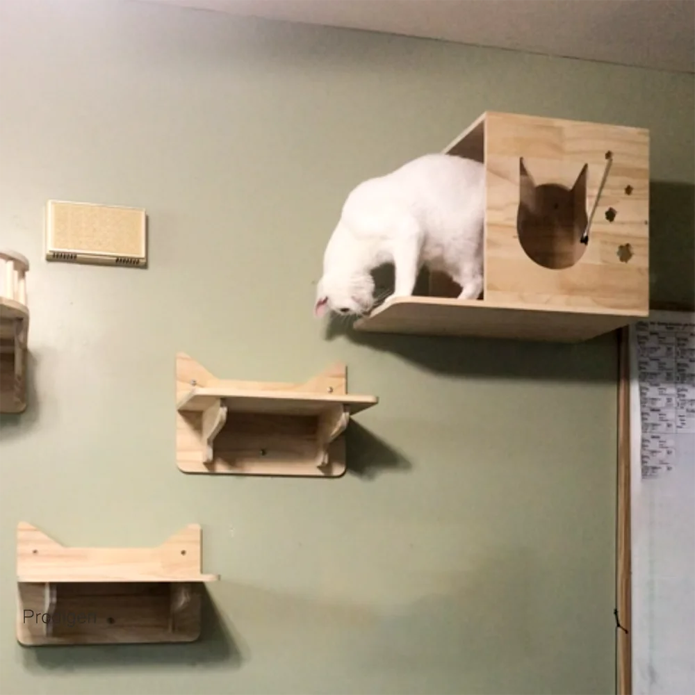 Wall Mounted Wooden Cat House Furniture Scratcher Shelves Climbing Ladder Perch