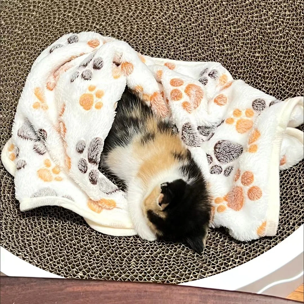 This cozy pet blanket is perfect for keeping your furry friends warm during the autumn and winter months. Designed with a cute kitten footprint pattern, it is suitable for small, medium, and large cats and dogs, including breeds like Chihuahuas and French Bulldogs.