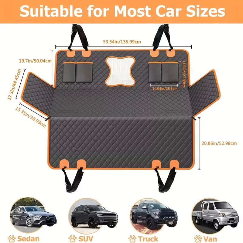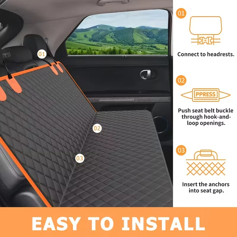 Waterproof Pet Car Seat Cover with Hanging Bag is designed to protect your car’s interior while providing comfort for your pets during travel. This durable cover is suitable for both dogs and cats, making it a versatile choice for pet owners.