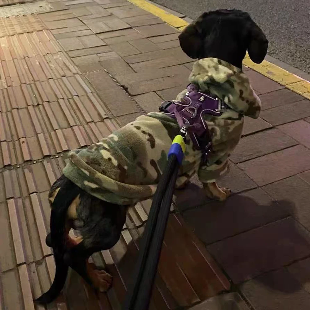 This winter, keep your beloved wiener dog warm and stylish with our cozy fleece hooded sweatshirt. Designed with a fun badger camouflage pattern, this soft coat is perfect for dachshunds and other small breeds, ensuring comfort and warmth during the colder months.