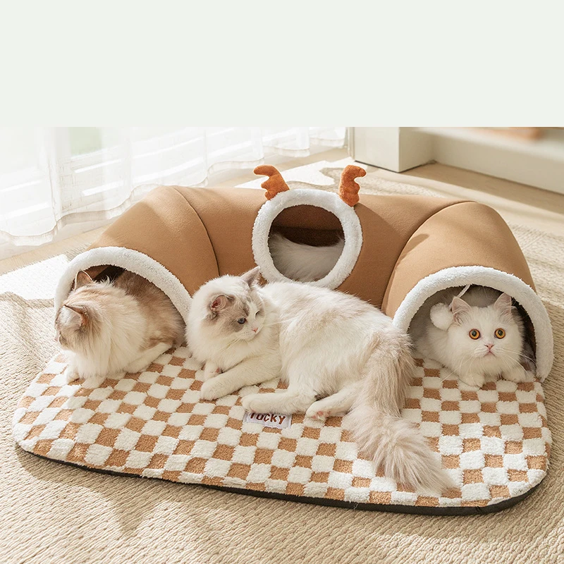 Winter Indoor Warm Plush Cat Bed Reindeer Appearance Hide and Seek Cat Tunnel