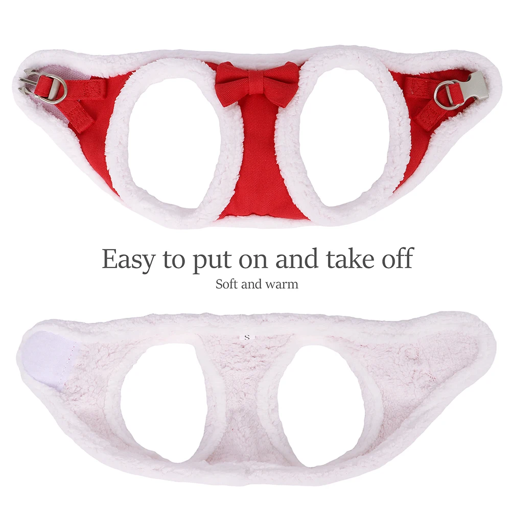 Winter Warm Dog Harness Leash Set Soft Fleece Pet Harness Vest Bowtie