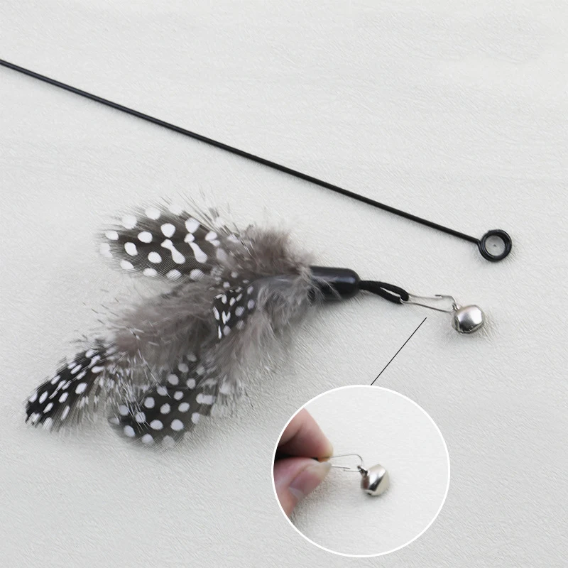Wooden Handle Spring Teasing Cat Stick Pearl Feather Replacement Head Toys